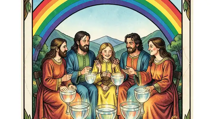 Десятка Кубков Таро раскрывает глубинные эмоции и семейную гармонию, показывая путь к удовлетворённой жизни.