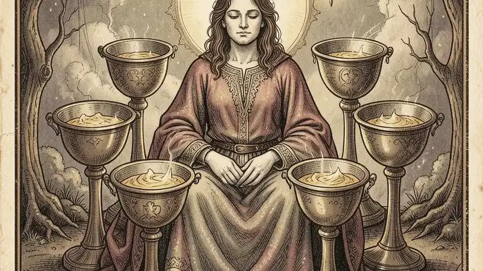Карта указывает на то, что отношения могут казаться идеальными, но скрывать проблемы. Важно обсудить реальные чувства и не полагаться только на эмоциональное удовлетворение.