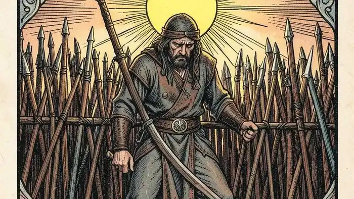 Девятка Жезнов раскрывает стойкость и готовность к защите в Таро, показывая, как преодолеть последние преграды на пути к победе.