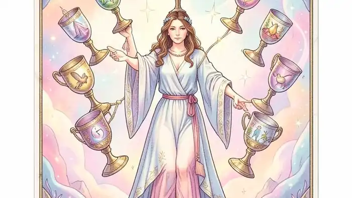 Семерка Кубков — одна из самых загадочных карт в колоде Таро, особенно когда она выпадает в качестве «карты дня». В этом контексте она становится своего рода компасом, указывающим на то, что ваш день будет полон разнообразных вариантов, каждый из которых манит своей привлекательностью. Однако, как и любой аркан, она несёт в себе двойственность: внешняя яркость часто скрывает внутреннюю неопределённость.
