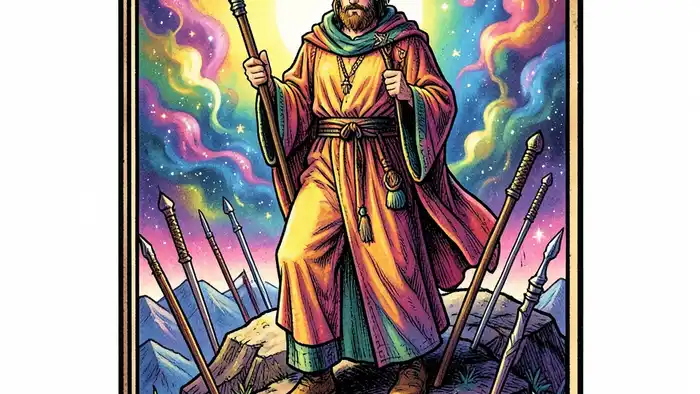 Семерка Жезлов Таро раскрывает конфликт и стремление к победе; узнайте, как интерпретировать эту карту в любви, работе и духовных практиках.
