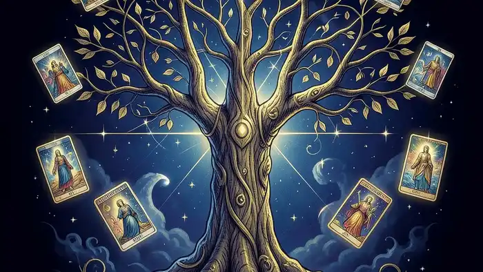 Древо Сефирот возникло в еврейской мистике в XII веке, но его влияние распространилось на западные оккультные традиции благодаря работе Папаса и later Кроули. Система состоит из десяти Сефирот, каждая из которых представляет аспект божественного проявления. В раскладе на карьеру мы используем только семь позиций, которые соответствуют ключевым стадиям профессионального роста: Корень, Сила, Путь, Препятствие, Поддержка, Выход и Завершение.