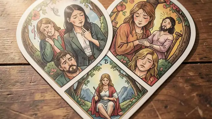 Ниже два детальных примера, основанных на реальных клиентах. Каждый пример иллюстрирует, как расклад «два сердца» помогает выявить скрытые причины и предлагает конкретные шаги к облегчению.