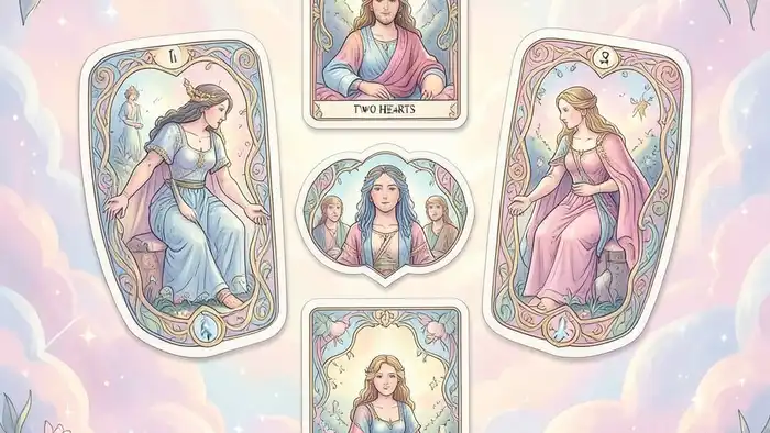 Символика двух сердец восходит к древним алхимическим традициям, где сердце было символом души, а двойственность — процессом трансформации. В колоде Уэйта, например, карта «Влюблённые» часто используется в сочетании с «Сила», чтобы подчеркнуть внутреннюю гармонию. В раскладе «два сердца» мы часто видим такие арканы, как «Отшельник», «Колесо Фортуны» и «Суд», которые указывают на этапы исцеления.