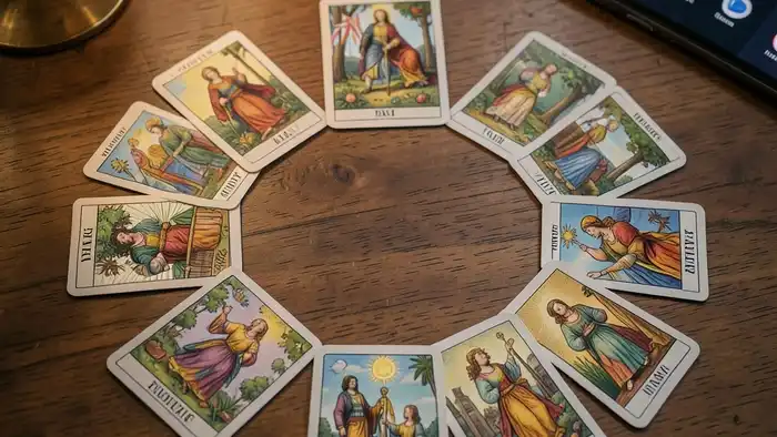 После того как все 12 карт интерпретированы, просмотрите их в совокупности. Ищите повторяющиеся символы, цвета, арканы. Это поможет выявить общую тему года — например, «трансформация», «рост» или «консолидация».
