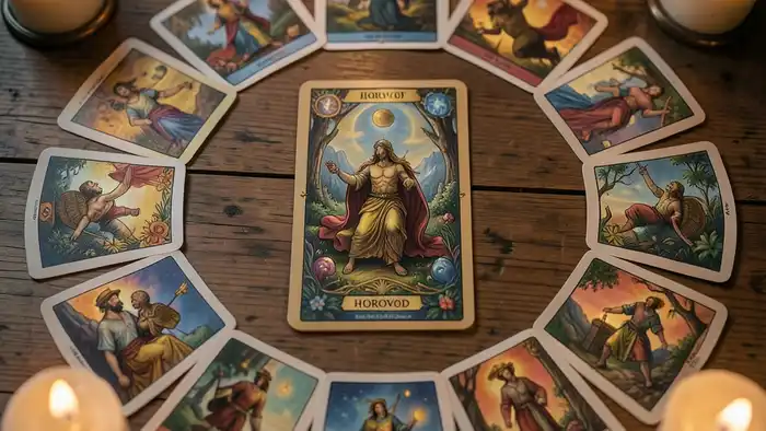 Расклад «хоровод» – это один из самых популярных в русскоязычном сообществе Тарологов, когда речь идёт о бывших партнёрах. Он позволяет увидеть, какие энергии продолжают вращаться вокруг вас, какие нерешённые вопросы остаются в «круге» и какие шаги могут привести к примирию или к окончательному закрытию. Рекомендуем также прочитать: Семерка Жезлов Таро: значение карты в раскладах на отношения, работу и психологию. Рекомендуем также прочитать: Умеренность в Таро: медитация на аркан равновесия и трансформации.