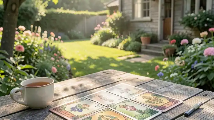 - Перетасуйте колоду, сосредоточившись на вопросе «Что сейчас происходит с моим садом и как это влияет на мою жизнь?».