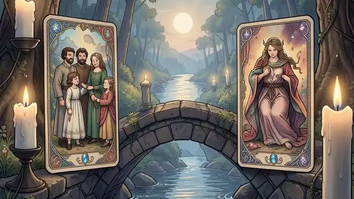Расклад Таро "мост" помогает решить конфликт между семьёй и любовником, раскрывая скрытые мотивы и возможные последствия выбора.