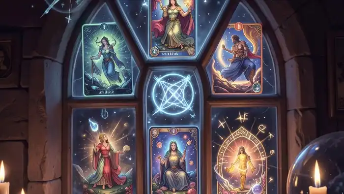 Расклад Таро «окно в будущее» на заговор – это специализированный метод, который сочетает традиционную символику Таро с целенаправленным энергетическим запросом. По своей структуре он напоминает окно, где каждая карта – это часть панорамы, показывающая, как текущие обстоятельства влияют на будущий результат магического действия.
