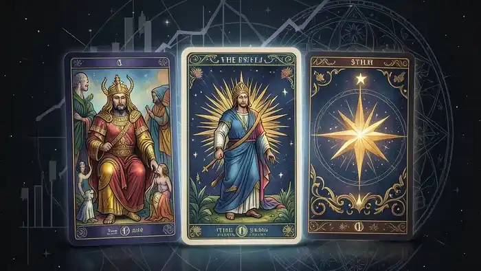Будущее — это вектор. Звезда (XVII) — прекрасный знак долгосрочных перспектив, восстановления и появления новых, ясных возможностей после периода застоя. Пять Пентаклей — предупреждение о возможных финансовых потерях, периоде нужды или отчуждения от рынка. Но помните: это тенденция, которую можно изменить. Тройка Жезлов говорит о расширении горизонтов — возможно, выходе на новые рынки или успешной диверсификации портфеля.