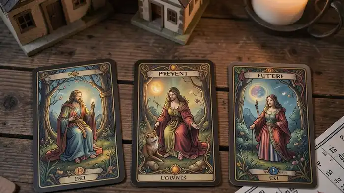 Трёхкарточный расклад возник в конце XIX века в колоде Уэйта, где каждый аркан имел двойное значение – личное и коллективное. Позже, в 1970‑х годах, Памела Кроули адаптировала его под финансовый анализ, добавив акцент на временные измерения – прошлое, настоящее и будущее.