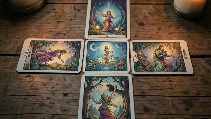Суть расклада проста: пять карт образуют форму креста, где каждая позиция отвечает за определённый аспект текущей ситуации. Центр отражает основную энергию, верхняя карта – цель, нижняя – фундамент, левый луч – препятствия, правый – ресурсы и поддержу. Такая симметрия позволяет увидеть как внутренние, так и внешние влияния, что особенно ценно при начале нового жизненного этапа.