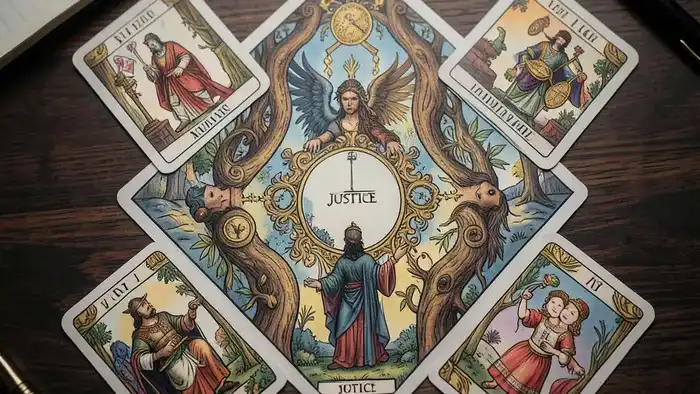 Что мы видим? Конфликт («7 Мечей») разворачивается между методичным тружеником («Рыцарь Пентаклей») и креативным манипулятором («Маг»). Их союз («2 Кубков» перевернута) дал трещину из-за неясностей в авторстве. Карта «Справедливость» в центре — это и совет, и прогноз. Совет: не вести войну в кулуарах, а выносить вопрос на объективный, «судебный» уровень, готовя доказательства. Прогноз: если так и сделать, решение будет честным, но холодным. Эмоционального примирения (которое могла бы дать, например, «10 Кубков») не предвидится.