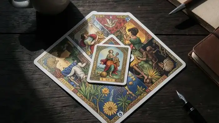 Если в позиции «Фундамент» (3) выпадает, скажем, Пятерка Пентаклей (нужда), а в позиции «Внешние влияния» (2) — Императрица (изобилие), это говорит о парадоксе: внешние возможности есть, но внутреннее ощущение — дефицита. Задача года — преодолеть этот разрыв. Центральная карта подскажет, как.
