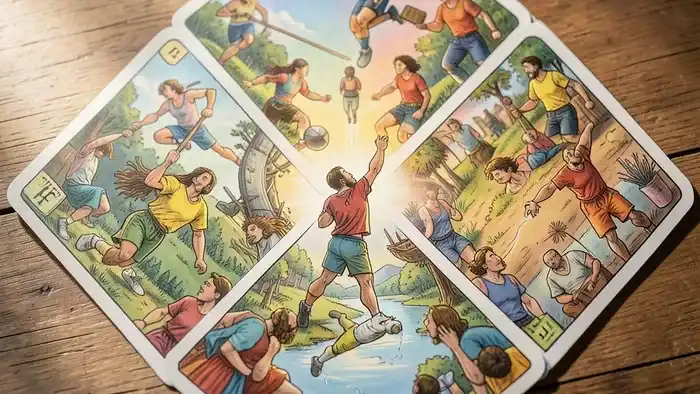 Рекомендации: включить в тренировочный план периодизацию, чтобы избежать перегрузок («Башня»), использовать техники визуализации («Сила») и доверять поддержке команды («Королева Пентаклей»).
