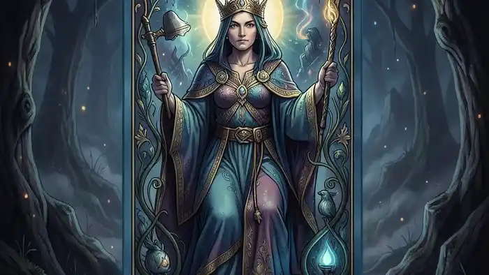 Что мы видим? Суть (Иерофант) и Ключ (Отшельник) — оба Старших Арканы, что говорит о важности этого этапа для личностного роста. Прошлое (9 Мечей) напрямую блокирует использование текущей возможности (Туз Пентаклей) через страх. Внутреннее состояние (Рыцарь Кубков) красиво, но пассивно, а Совет (Колесница) требует активных действий. Центральный Отшельник предлагает решение: прежде чем мчаться на Колеснице, нужно, подобно герою Старших Арканов, совершить путешествие внутрь себя и найти свой собственный свет. Застой здесь — не тупик, а пауза для переосмысления.