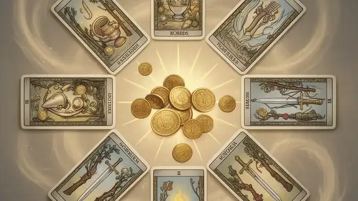 Согласно традиции Уэйта, Пентакли в центре означают, что ваши ресурсы находятся в равновесии, но требуют внимательного контроля. Чаши могут говорить о том, что вы слишком эмоционально привязаны к финансовым обязательствам, что мешает объективному планированию.