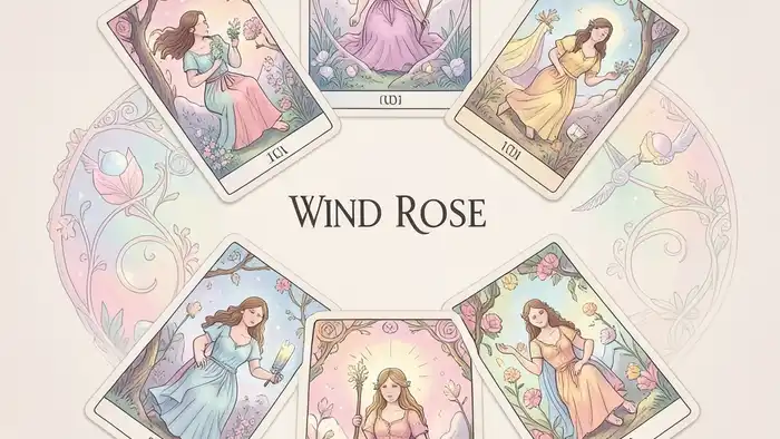 Символика розы ветров происходит от навигационной карты, где каждый луч указывает направление ветра. В Таро каждый луч символизирует отдельный аспект отношений: личность, чувства, внешние влияния, внутренние барьеры и итоговый путь. Сочетание этих направлений образует целостную картину, позволяющую увидеть, куда «дует» ваша дружба и какие изменения могут произойти.