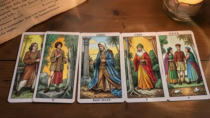 Расклад Таро «цепочка» на наследство раскрывает скрытые мотивы и возможные пути решения наследственных вопросов, позволяя увидеть будущее и принять осознанные решения.