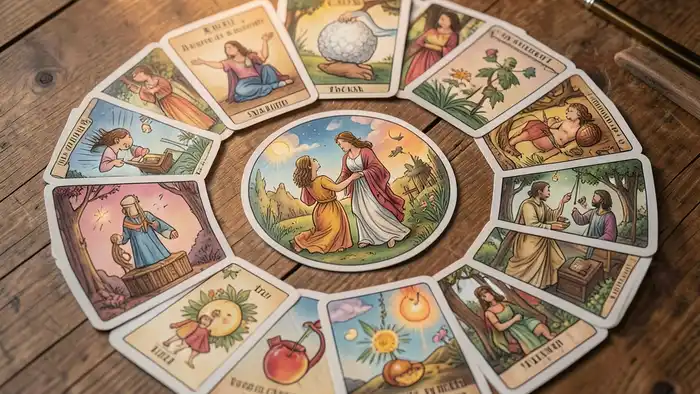 Рассмотрим реальный кейс из моей практики, где клиентка Мария (28 лет) пришла с диагнозом анорексия. Она попросила провести расклад «веер», чтобы понять, какие внутренние блоки мешают ей восстановиться.