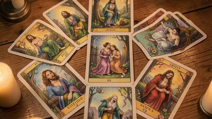- Любовь (Карта «Влюблённые») — поддержка партнёра будет важна, совместные решения укрепят уверенность.