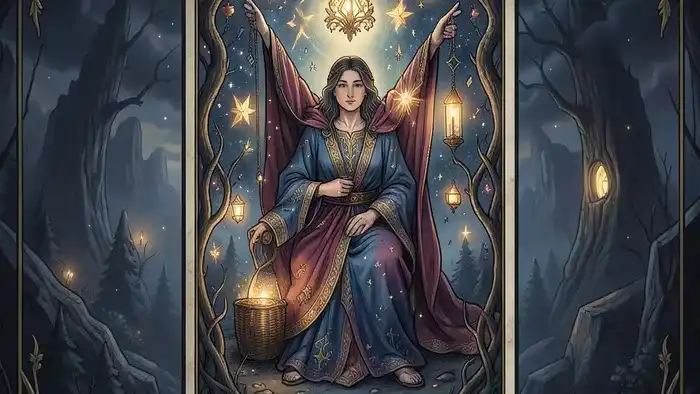 - Карта 6: Звезда (Рекомендация) — совет найти надежду и практиковать успокаивающие ритуалы.