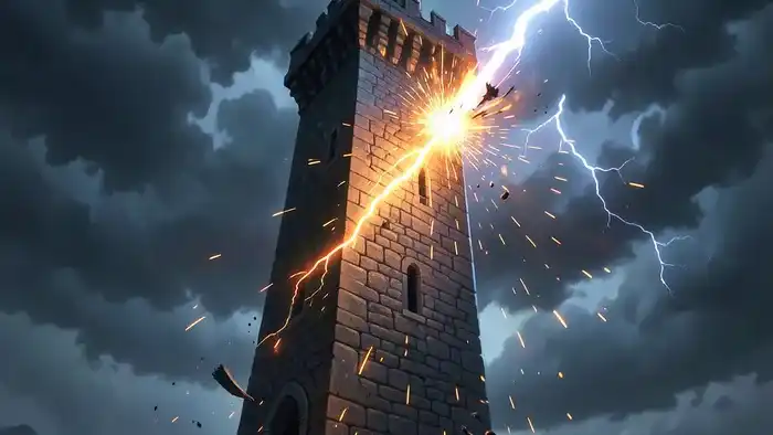 - Молния: Чаще всего трактуется как вспышка божественной воли или внезапное прозрение. Она приходит извне (от Бога, Судьбы, Вселенной), но бьёт точно в слабое место — верхушку башни, символ гордыни и отрыва от земли. Это сила, которую невозможно контролировать или предсказать.