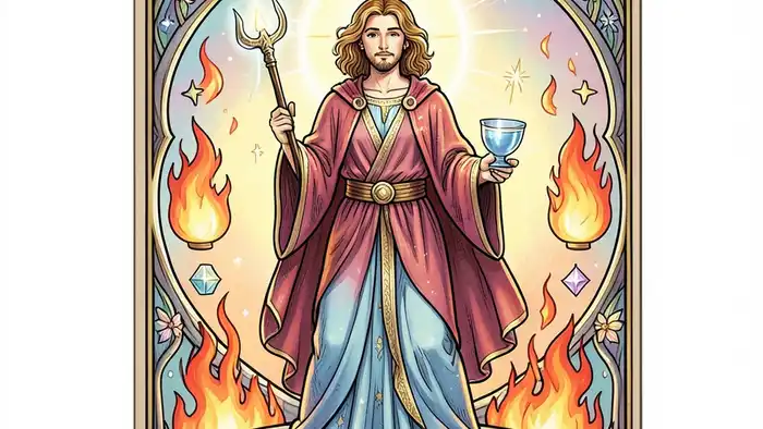 В традиционных колодах карта Мага изображена молодым человеком, держащим в руках жезл и куб, стоящим на бесконечном фоне. Жезл часто ассоциируется с огненной энергией, а куб — с элементом воды. Такое сочетание указывает на необходимость интеграции активных и успокаивающих сил. Я помню, как в своей практике я впервые использовал Мага для клиента с хронической усталостью: после нескольких сеансов он сообщил о росте энергии, что, по моему мнению, было результатом работы с этим архетипом.