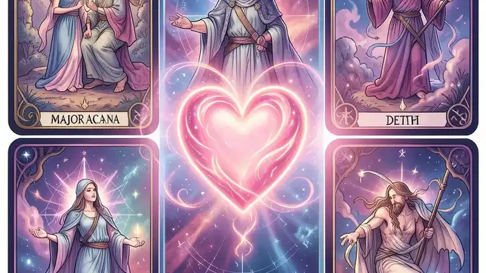 Старшие Арканы — это двадцать два символа, каждый из которых несёт глубокий смысл. По традиции Уэйта они представляют крупные жизненные этапы, а в контексте любви — важные вехи на пути героя. Например, Влюбленные символизируют выбор между двумя путями, а Смерть — трансформацию, конец старого паттерна и начало нового.