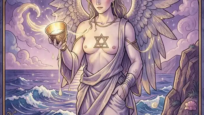 Взгляните на классическое изображение Артура Уэйта. Ангел, часто андрогинный, стоит одной ногой в воде, другой — на суше. Он переливает жидкость из одного золотого кубка в другой. На груди — треугольник в квадрате, символ одухотворения материи. Это не статичная фигура. Это процесс. Вода символизирует бессознательное, эмоции, интуицию. Земля (или огонь в некоторых трактовках) — сознание, волю, действие. Ангел не выбирает одну стихию. Он соединяет их в себе, создавая поток.