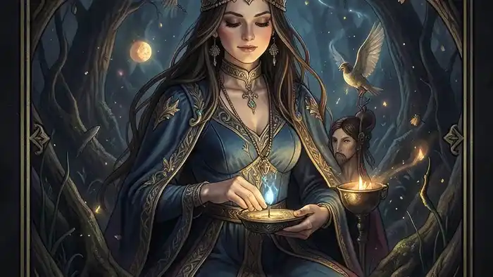- Жрица символизирует не внешнюю страсть, а глубину, интуитивную связь и понимание без слов.