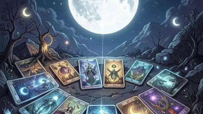 Расклад луна раскрывает скрытые энергии ночи и помогает принимать решения, используя лунные фазы в Таро.