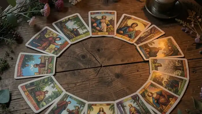 - Разложите карты по выбранной схеме. Обычно это 5-7 карт в определенном порядке, например, круг или линия.