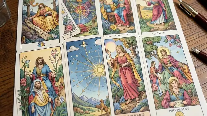 Если в позици�� Солнца выпала «Колесо Фортуны», это указывает на переменчивость жизненного пути, а «Звезда» в позиции Луны обещает эмоциональную стабилизацию.